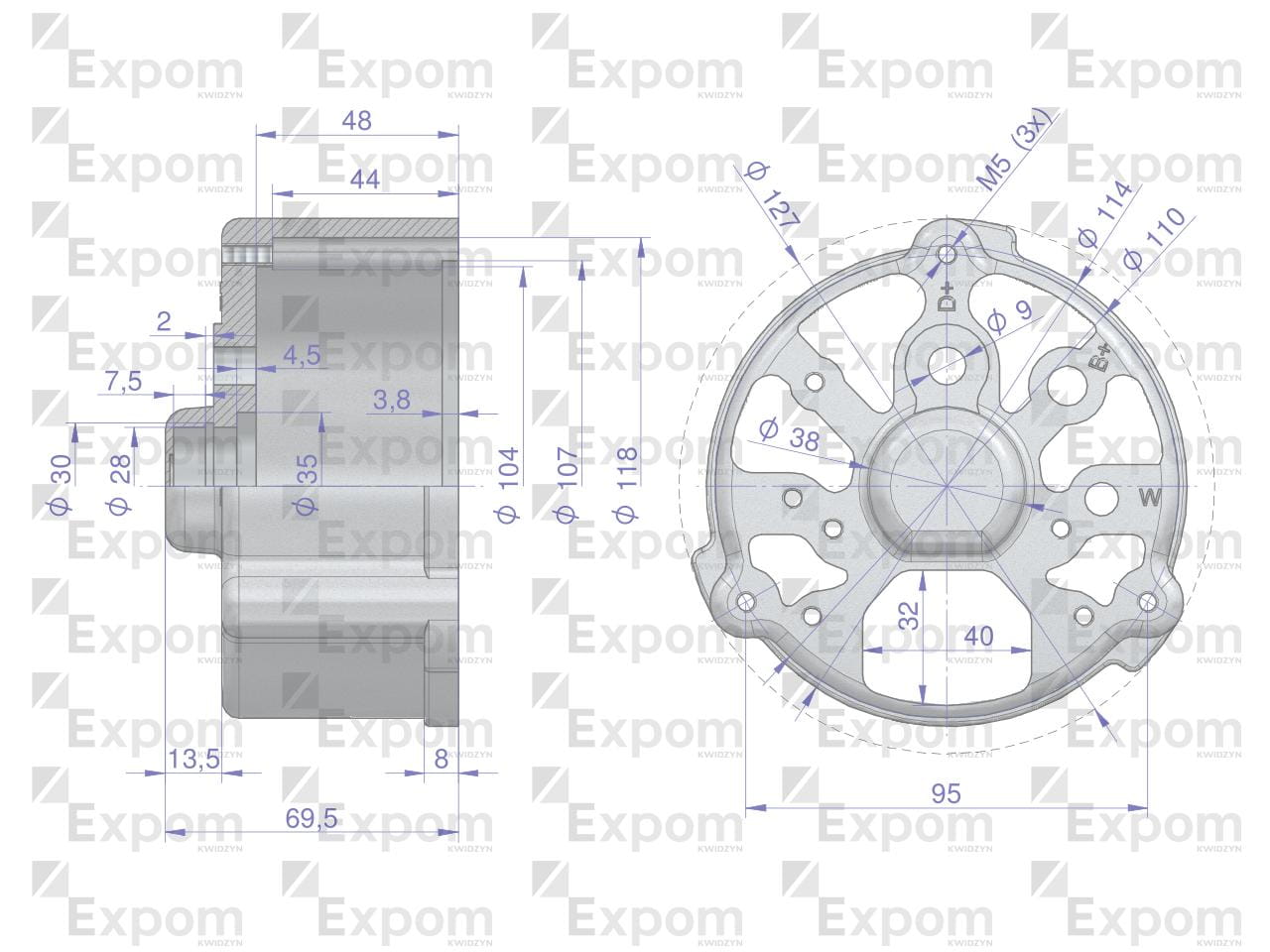 Pokrywa tylna alternatora 15.130.165, 7017732M1 MF3 Nowy Typ EXPOM euUWAGA!!! Indeks ten jest nową konstrukcją Expom eu nie jest kompatybilny ze starą produkcją Expom Kwidzyn