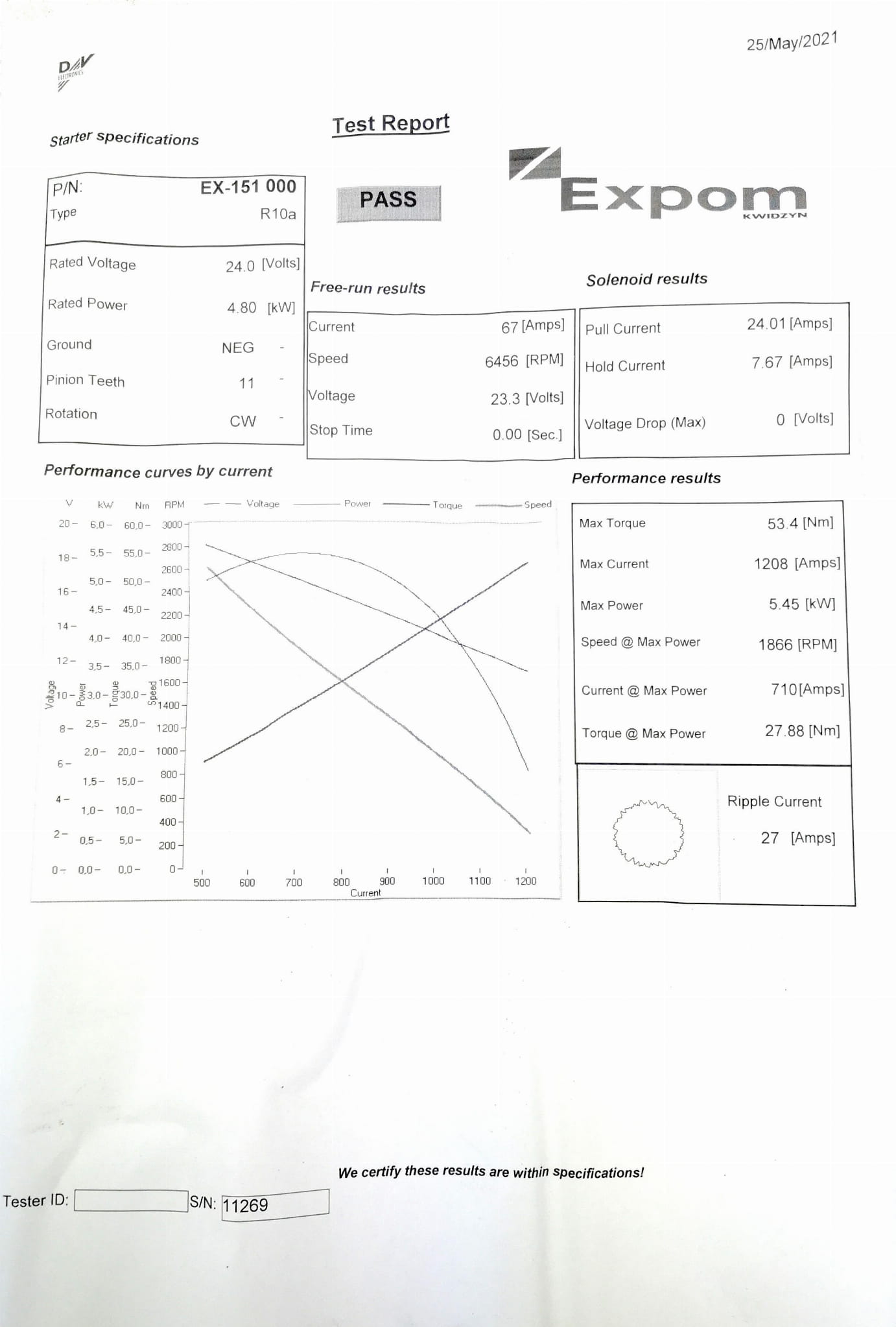 Rozrusznik R10A 300851ER. EX151000 24V 4.8 kW BIZON EXPOM KWIDZYN eu, wykonany z najwyższej jakości komponentów dostarczanych tylko przez sprawdzonych i audytowanych poddostawców, 100% rozruszników przechodzi test wstępny oraz test końcowy, zwieńczony wydrukiem z numerem seryjnym. Numer ten wraz z testem pozostaje zachowany w archiwum Expom Kwidzyn eu oraz jego indywidualna kopia dołączona jest do produktu. Rozruszniki z EXPOM KWIDZYN eu są gwarancją solidności i jakości,posiadają wydłużoną gwarancję do 36 miesięcy.