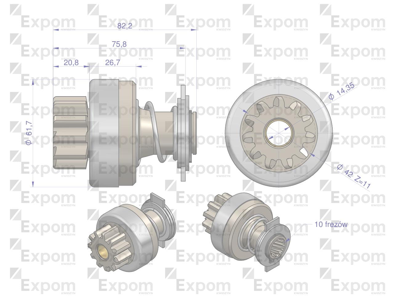 Zespół sprzęgający rozrusznika JCB 16.902.621 (rozrusznik Iskra) EXPOM KWIDZYN eu